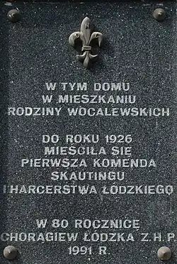 Pierwsza siedziba komendy łódzkiego skautingu (harcerstwa) mieściła się w mieszkaniu zasłużonej dla łódzkiego skautingu i harcerstwa rodziny Wocalewskich przy ul. Konstantynowskiej (dziś Legionów) 51.