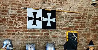 Chorągiew braniewska znakowała się banderą z dwoma krzyżami, białym i czarnym, co nawiązywało do symboliki hanzeatyckiej, gdyż Braniewo w średniowieczu pozostawało członkiem Hanzy |