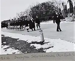 - pomagano władzom bezpieczeństwa – pełnienie służby porządkowej przez harcerzy, np. z Białogardu przy przesiedlaniu Niemców i w Szczecinie wartowniczej przy ochronie mienia osób powracających z Zachodu i przesiedlonych z ZSRR;