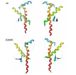 - ↑ Goldfarb LG, Brown P, Mitrova E, Cervenakova L, Goldin L, Korczyn AD, Chapman J, Galvez S, Cartier L, Rubenstein R, Gajdusek DC. Creutzfeldt-Jacob disease associated with the PRNP codon 200-lys mutation: an analysis of 45 families. Europ J Epidemiol. 7: 477-486, 1991.