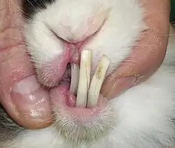Jeśli zwierzę ma wadę genetyczną to trzeba zabierać je co 6-8 tygodni do lekarza weterynarii na zabieg podcięcia zębów. Królików, u których stwierdzi się wadę genetyczną, nie powinno się rozmnażać.