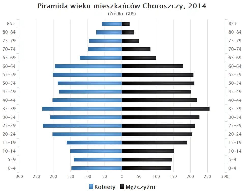 - Piramida wieku mieszkańców Choroszczy w 2014 roku[10].