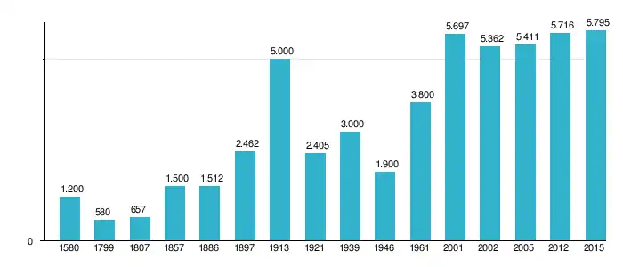 Według danych z 30 czerwca 2015 miasto liczyło 5795 mieszkańców[11].