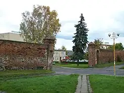 - mury miejskie obronne z XIV–XV w. Fragmenty: północny, południowy i zachodni przy ul. Lipcowa, ul. Bohaterów Warszawy i ul. Mur Południowy; do czasów obecnych zachowały się jedynie niewielkie fragmenty średniowiecznego muru miasta, istnieje ponad połowa muru północnego oraz cząstki muru południowego i zachodniego. Zachował się także wał ziemny zwany w przeszłości „Mnisim wałem”