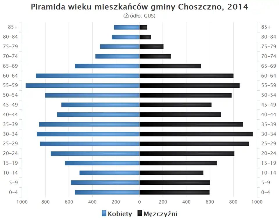 - Piramida wieku mieszkańców gminy Choszczno w 2014 roku[2].