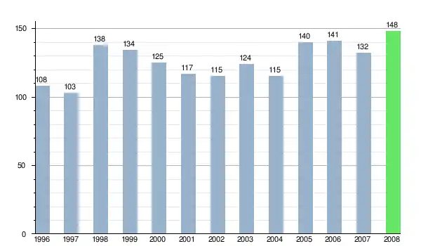 Zmiany liczby ludności w miejscowości Chrťany od 1996 roku.