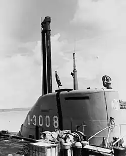 U-2540 typu XXI z okresu II wojny światowej w Bremerhaven - widoczne chrapy[2] z głowicą z przodu kiosku (przed peryskopami)