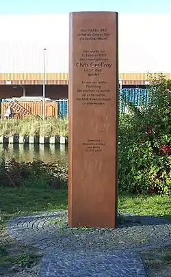 - ↑ Das kurze Leben des Chris Gueffroy | Bundesstiftung zur Aufarbeitung der SED-Diktatur [online], bundesstiftung-aufarbeitung.de [dostęp 2022-03-13].