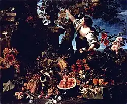 - Kwiaty, owoce i kobieta zbierająca winogrona (1689) – Neapol, Museo di Capodimonte