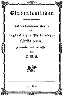 - Studentenlieder: Aus den hinterlassenen Papieren eines unglücklichen Philosophen Florido genannt, Halle (Saale) 1781