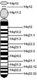 Następujące choroby związane są z mutacjami w obrębie chromosomu 14: