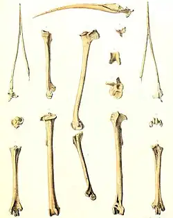 - ↑ A. Milne-Edwards: Recherches sur la faune ornithologique éteinte des iles Mascareignes et de Madagascar. Paris: G. Masson, 1866, s. 61–83. (fr.).