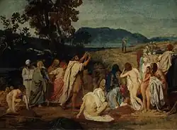 Aleksandr Iwanow był człowiekiem głęboko wierzącym i pragnął poprzez siłę wyrazu swojego dzieła wskazać wszystkim widzom właściwą drogę życiową, za jaką uważał chrześcijaństwo[3]. Jego zdaniem szczerze realizowanie zasad wiary w życiu codziennym przyniosłoby również sprawiedliwość społeczną i wyzwolenie od wszelkiego ucisku. Stąd przedstawiony na obrazie Jan Chrzciciel został ukazany nie tyle jako głosiciel odmiany duchowej jednostek, a jako społeczny przywódca, głoszący rychłą poprawę sytuacji ludu[3].