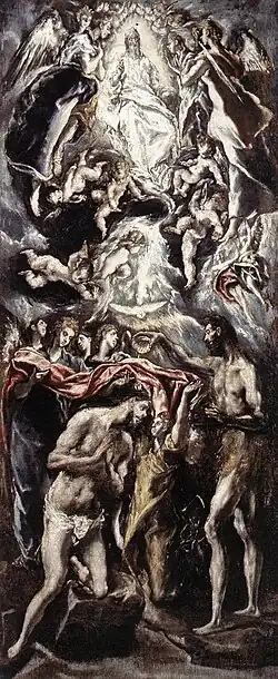 Zgodnie z manierą artystyczną jaka coraz częściej towarzyszy artyście, postacie Chrystusa i Jana są nadnaturalnie wydłużone. Przedstawione przez niego anioły, chmury, gołębice tworzą fryz ponad głową Chrystusa; a tak daleko są niematerialne, że nie wiadomo już, gdzie kończy się jakiś policzek, gdzie zaczyna się obłok, co jest refleksem pukla włosów, a co jest już tylko światłem[3]
