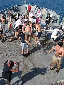 Chrzest równikowy – tradycyjny obrzęd na jednostce pływającej dla osób pierwszy raz przepływających przez równik.