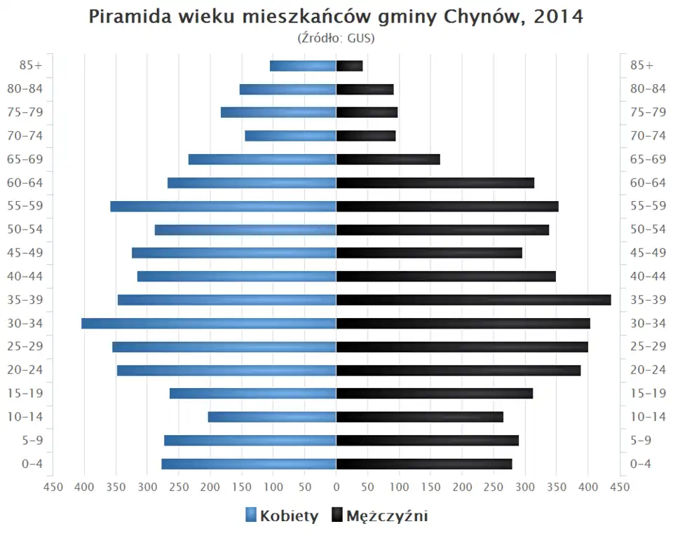 - Piramida wieku mieszkańców gminy Chynów w 2014 roku[8].