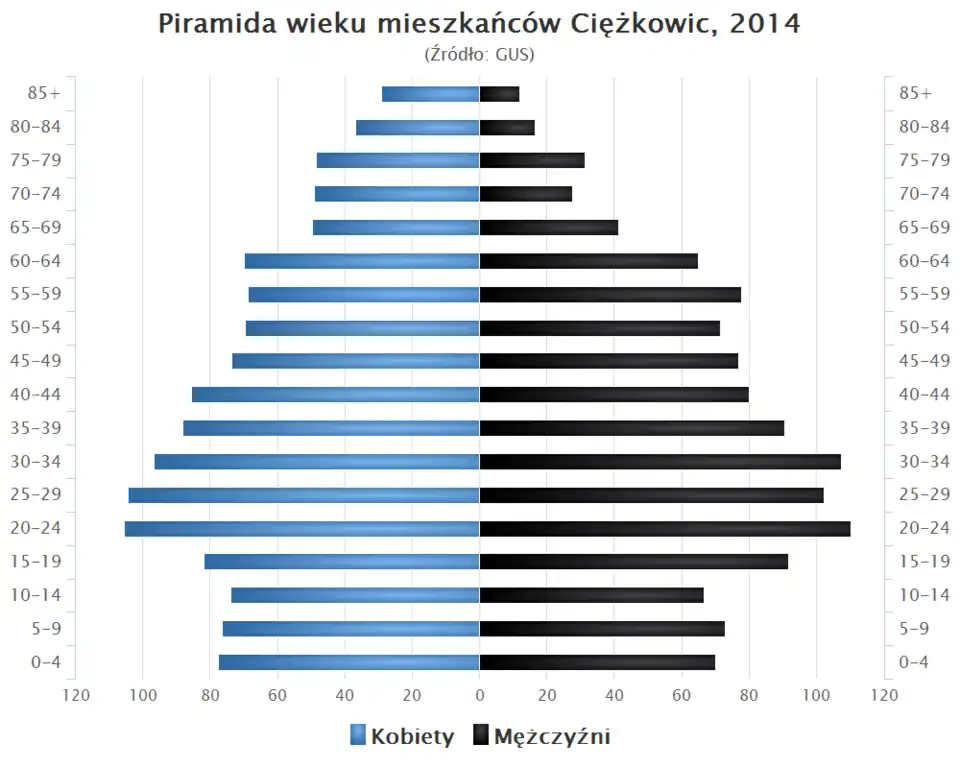 - Piramida wieku mieszkańców Ciężkowic w 2014 roku[12].