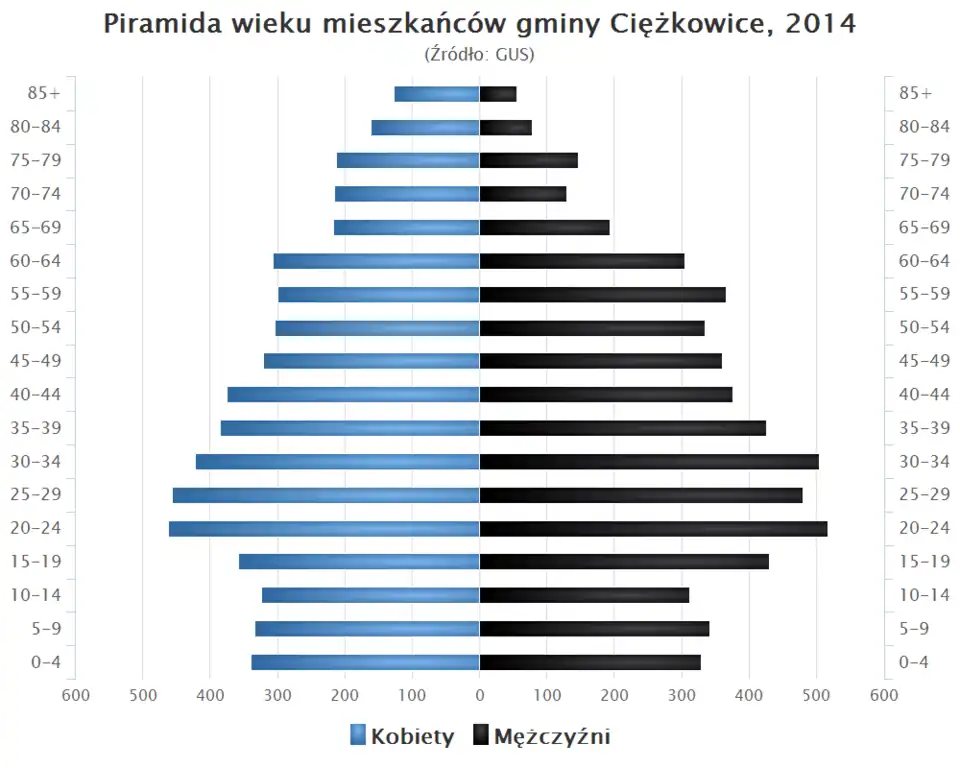 - Piramida wieku mieszkańców gminy Ciężkowice w 2014 roku[1].
