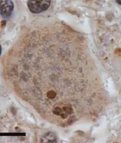 - ↑ Okamoto K., Mizuno Y., Fujita Y. Bunina bodies in amyotrophic lateral sclerosis. „Neuropathology”. 28. 2, s. 109-15, 2008. DOI: 10.1111/j.1440-1789.2007.00873.x. PMID: 18069968.