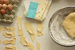 - Używa się mąki zawierającej słaby lub średni gluten[2][1]. Mocniejszy gluten w mące wydłuża czas zbijania ciasta[2].
