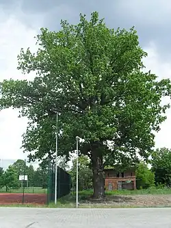 - dąb szypułkowy o obwodzie 347 cm rosnący w parku wiejskim[8]