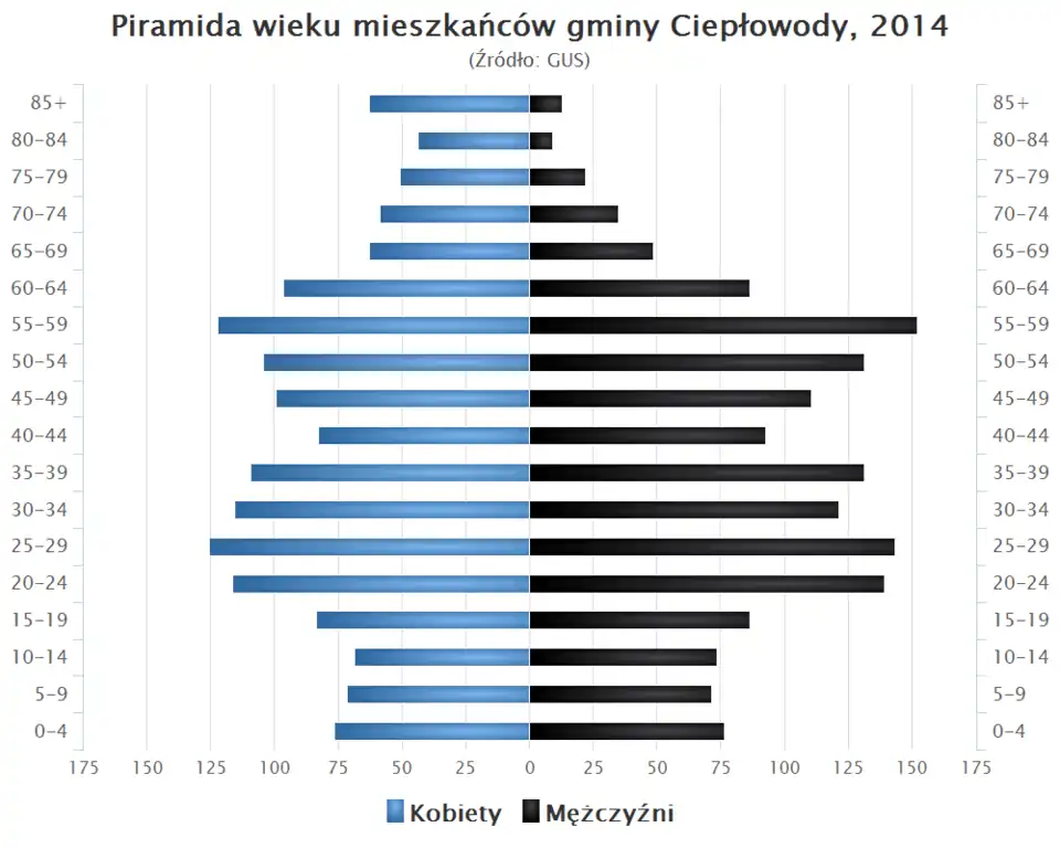 - Piramida wieku mieszkańców gminy Ciepłowody w 2014 roku[6].