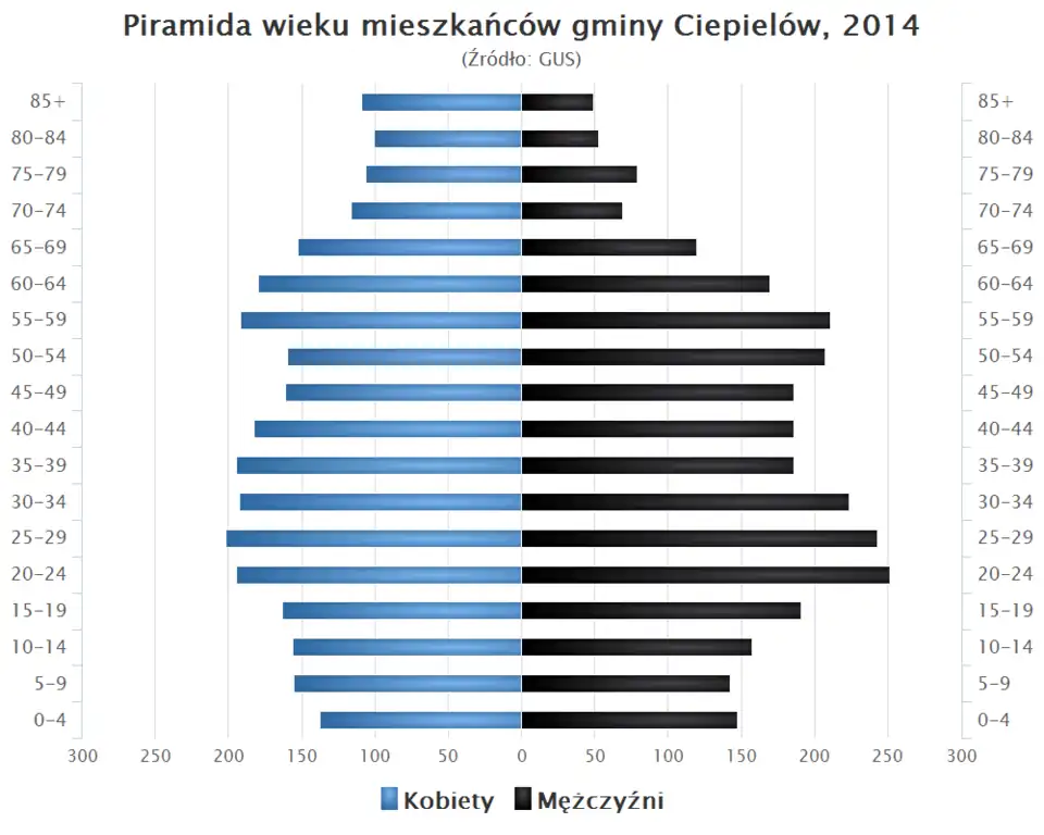 - Piramida wieku mieszkańców gminy Ciepielów w 2014 roku[7].