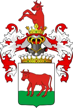 Ciołek, byka czerwonego w polu białym noszą. Rodzina niemiecka, tędzy ludzie, ale skłonni do przemocy i bezbożności.