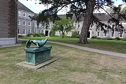 W związku ze zwiększaniem się liczby studentów, po zakończeniu I wojny światowej podjęto decyzję o wybudowaniu kolejnego kompleksu budynków, który miał jednocześnie stanowić upamiętnienie poległych podczas tej wojny członków kolegium. Zaprojektowany przez Gilesa Gilberta Scotta budynek Memoriałowy (Memorial Building) wzniesiono po zachodniej stronie rzeki w latach 1922-35 (następnie w osi tego budynku dobudowano zaprojektowaną przez tego samego architekta nową bibliotekę uniwersytecką, tworząc w ten sposób dziedziniec Memoriałowy (Memorial Court)). W roku 1955 otwarto zaprojektowane także przez Scotta rozszerzenie Dziedzińca Memoriałowego upamiętniające członków kolegium poległych podczas II wojny światowej. Prace sfinansował amerykański filantrop Paul Mellon, będący członkiem kolegium. W 1986 dobudowano budynek biblioteczny, dzieląc w ten sposób dziedziniec na dwa mniejsze: Memorial Court i Ashby Court. Ozdobę dziedzińca Memoriałowego stanowi rzeźba Henry’ego Moore’a, przedstawiająca upadającego wojownika (The Falling Warrior).