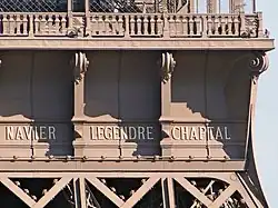 - ↑ The Names of the 72 Scientists Listed on the Borders of Each of the Four Sides of the Eiffel Tower. toureiffel.paris. [dostęp 2011-11-20]. (ang.).