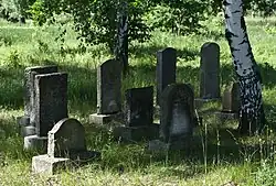 - ↑ Burchard podaje nieznaną datę powstania cmentarza. Podnosi też, że cmentarz został zupełnie zniszczony i jego teren porasta las.