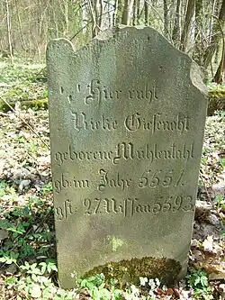 - ↑ Burchard podaje powierzchnię jako 0,6 ha, nieznaną datę powstania cmentarza i liczbę zachowanych nagrobków jako kilka