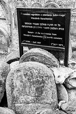 - ↑ K. Bielawski: Cmentarz żydowski w Starachowicach. [dostęp 2013-02-09]. Daty nagrobków wskazują na to, że pochówki były dokonywane przed 1891, czyli datą powstania cmentarza. Autor przypuszcza, że w 1891 uregulowano stan prawny działki cmentarnej.