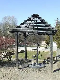 - Pomnik ofiar getta warszawskiego – ustawiony na masowej mogile, w której grzebano zmarłych w getcie. Pomnik został zaprojektowany przez Hannę Szmalenberg i Władysława Klamerusa[23]. Pomnik przeprojektowano w 2021 roku, w wyniku nowych ustaleń prac archeologicznych, rewidujących granice grobów masowych. Nowe założenie w postaci dwóch wyniesionych obrysów grobów oraz totemu na środku placu zostało zaprojektowane w pracowni Archiworks przez Macieja Szpalerskiego, Karola Dzika oraz Krzysztofa Matuszewskiego. Upamiętnienie powstało na jednych z największych grobów masowych w Europie, w dwóch wykopanych blisko siebie dołach o wymiarach 10 × 10 m i 10 × 20 m, głębokich na około 8 m, spoczęło - według historyków - od kilkunastu do kilkudziesięciu tysięcy bezimiennych ofiar.[24]