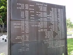 - Pomnik żydowskich oficerów Wojska Polskiego – upamiętniający zamordowanie kilkuset żydowskich oficerów i intelektualistów w Katyniu, Miednoje, Kozielsku, Ostaszkowie i Charkowie, odsłonięty 19 kwietnia 1997. Treść napisu w językach polskim, jidysz i hebrajskim brzmi: „Pamięci Żydów oficerów Wojska Polskiego zamordowanych przez NKWD wiosną 1940 r. w Katyniu, Miednoje i Charkowie”.