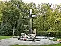 Pomnik upamiętnia polskich oficerów zamordowanych w 1940 w Związku Radzieckim. Projektant monumentu – Jakub Lewiński stworzył wieloelementową kompozycję zawierającą siedmiometrowy krzyż nawiązujący do wyglądu Orderu Virtuti Militari, z jakby przestrzelonym orzełkiem w partii centralnej i żelaznym sznurem u podstawy. W ten sposób artysta nawiązał do wyglądu ofiar tej tragedii, które znajdowane były w masowych grobach ze związanymi sznurem rękami i z przestrzelonymi od tyłu orzełkami na rogatywkach. Krzyż otaczają trzy kamienie z nazwami obozów, w których przetrzymywani byli polscy żołnierze i oficerowie. Ziemia z tych miejsc została umieszczona w postumencie pomnika. Za pomnikiem, na niewielkim murku, umieszczono metalowe tabliczki z nazwiskami ofiar zbrodni katyńskiej. Pomnik odsłonięto 11 listopada 1990. |