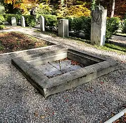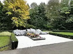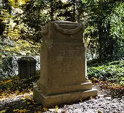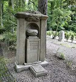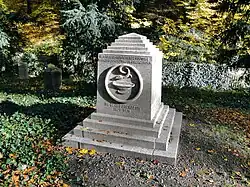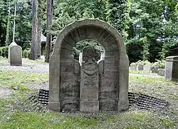 - ↑ Rzeźba Chrystusa zdobiąca nagrobek została po wojnie przeniesiona do kościoła św. Rodziny. W 2010 kopia rzeźby została ustawiona w niszy nagrobka, który w ten sposób odzyskał przedwojenny wygląd.