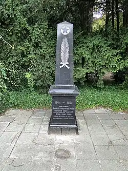 - obelisk z czarnego granitu z tekstem w języku rosyjskim upamiętniającym uczestników wielkiej wojny ojczyźnianej