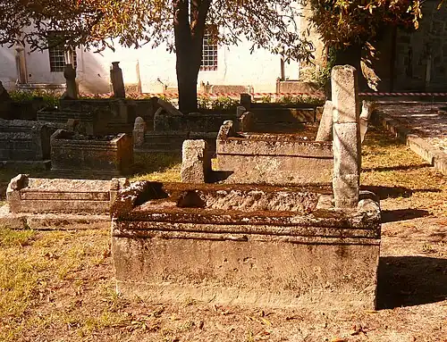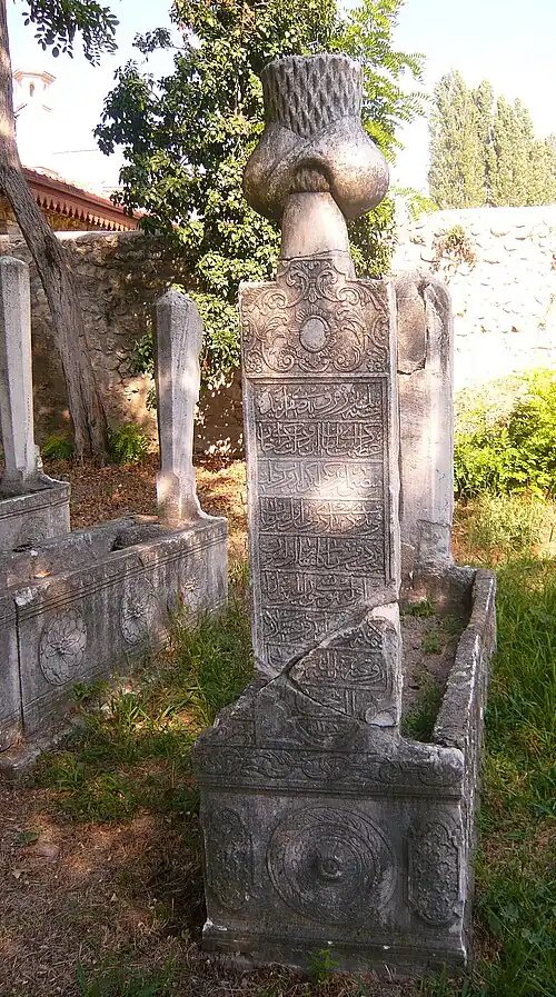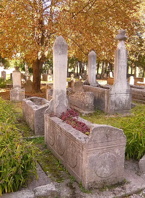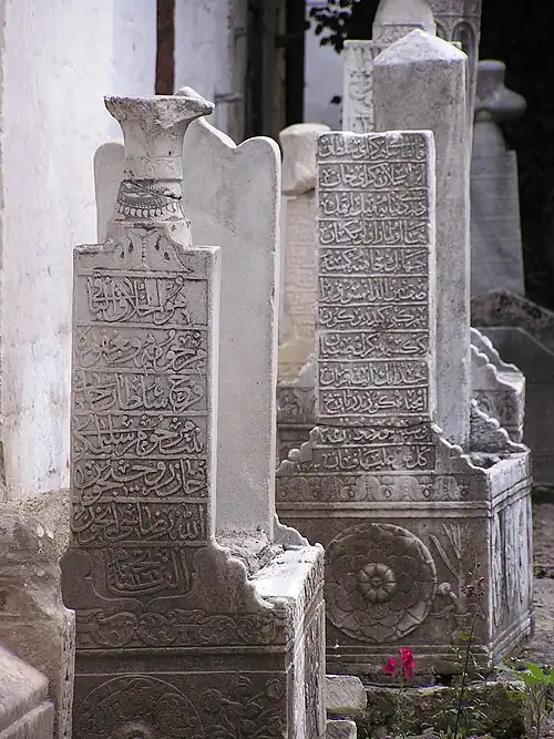 Stele na nagrobkach męskich zwieńczone są czałmą (turbanem), natomiast na stelach nagrobków kobiecych płaską czapeczką lub kłębkiem. Prawie wszystkie nagrobki ozdobione są wyrzeźbionymi epitafiami.