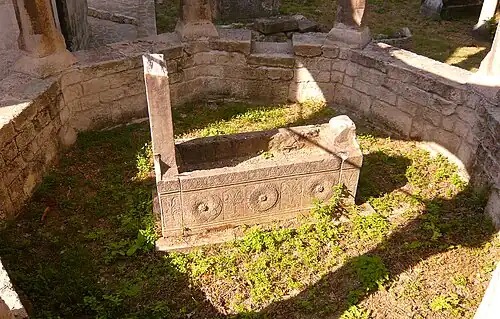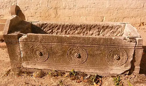 Większość zachowanych nagrobków jest wykonana z marmuru i ozdobiona pięknymi płaskorzeźbami. Cyprysy symbolizują smutek, a winorośl, róże i stylizowane rozety - życie wieczne. Wszystkie nagrobki wykonane są według takiego samego schematu: kamiennego sarkofagu i dwóch steli, różniących się między sobą. Stele od strony głowy są zwieńczone ozdobami w kształcie nakrycia głowy oraz ozdobione napisami.