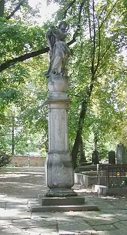 W sierpniu 1892 na cmentarz trafiła kolumna ze statuą Niepokalanego Poczęcia Najświętszej Marii Panny, stojąca wcześniej przed klasztorem reformatów na Śródce. Do naszych czasów zachował się dokument w aktach konsystorza opisujący powód przeniesienia: