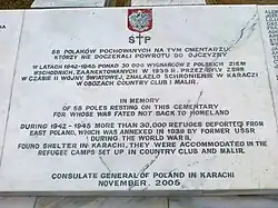W centralnej części cmentarza znajduje się 58 grobów Polaków, którzy nie doczekali powrotu do ojczyzny – polskich uchodźców przebywających w obozie przejściowym Karaczi Country Club, a także generała Pakistańskich Sił Powietrznych Władysława Turowicza (1908–1980). Generał po II wojnie światowej przybył do Pakistanu z grupą polskich oficerów i techników. Za swoje zasługi we współtworzeniu Pakistańskich Siły Powietrznych (PAF) otrzymał najwyższe odznaczenia pakistańskie. W 2005 roku dzięki staraniom konsulatu generalnego RP w Karaczi odnowiono groby i płytę zawierającą listę pochowanych Polaków.