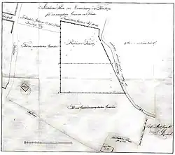 11 maja 1838 r. parafia ewangelicka pw. Marcina Lutra zakupiła za 1900 florenów reńskich przylegający do niego teren o powierzchni 13 085 m² (3638 sążni kwadratowych) – tzw. Ogród Augustiniego należący uprzednio Magdaleny Kloski.