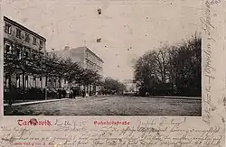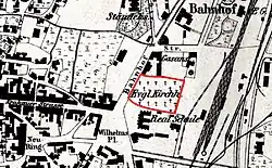 ![]() Jedno z nielicznych zdjęć cmentarza ewangelickiego w Tarnowskich Górach z uwiecznionym nagrobkiem Augusta de Boscamp-Lasopolskiego | |