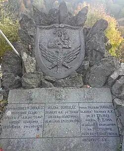 - Grobowiec rodziny Durkalców. Spoczywają w nim Ernest Durkalec ps. Sław, Helena Durkalec ps. Sława, ich syn Bolesław ps. Sławek oraz Maria Zawadzka ps. Chodak, żołnierze AK. Przez zaangażowanie Ernesta i Heleny w Armii Krajowej Niemcy spalili kierowane przez nich schronisko na Lubaniu (w którym również szpital polowy prowadził Artur Werner). Ich syn Bolesław był podchorążym w oddziale „Wilka”. Zginął 21 lutego 1944 roku w walce z Niemcami na Przysłopie.