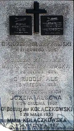 - Grób rodziny Kołączkowskich – lekarzy i zarządców uzdrowisk szczawnickich, w tym: Józefa – protoplasty rodu, jego córki Marii i jej męża Bogusława Kołączkowskich oraz jego wnuka Zbigniewa.