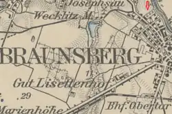 - ↑ Cmentarz jest naniesiony na mapie Karte des Deutschen Reiches z 1913 roku 1:100 000 (mapka w sekcji Powstanie i historia cmentarza – zaznaczenie czerwoną strzałką), wykonanej na podstawie zdjęć lotniczych z lat 1909 i 1910, źródło: Polona