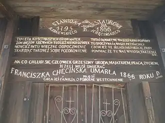 Dolną część napisu stanowi epitafium Franciszki Chęcińskiej.