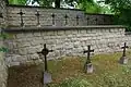 Na nagrobkach znajdują się osadzone na betonowym cokole krzyże różnego typu.