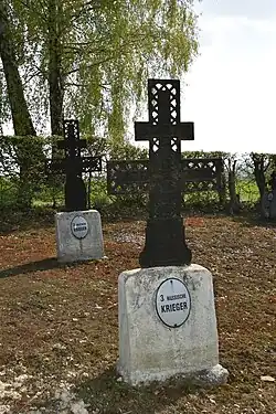 W 12 grobach zbiorowych i 46 pojedynczych pochowano tu 43 żołnierzy armii austro-węgierskiej i 44 żołnierzy armii rosyjskiej. Zidentyfikowano tylko 11 z nich. Żołnierze austro-węgierscy walczyli w III Pułku Strzelców Cesarskich i 31. pułku piechoty landszturmu, żołnierze rosyjscy w 174. romieńskim oraz 279. łochwickim pułkach piechoty[3][4].